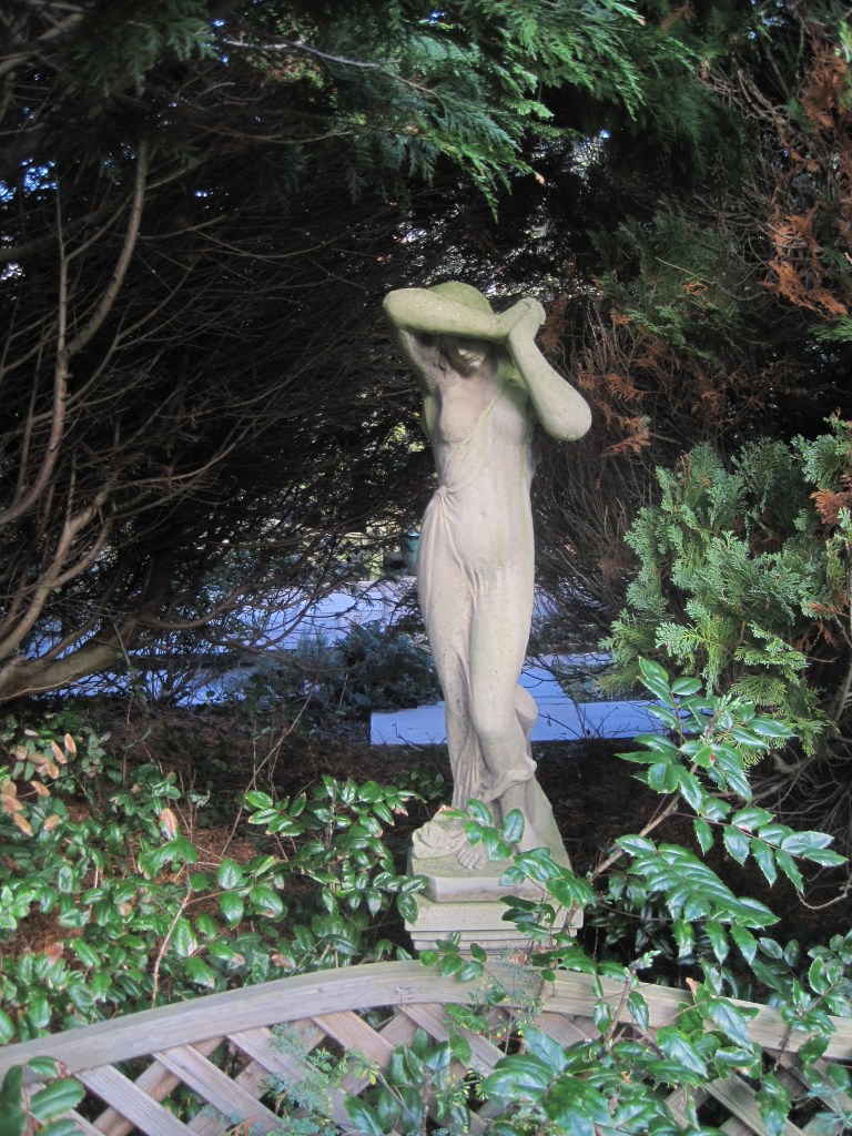 Not so much colour in the garden at this time of year but still things to enjoy. I love the undergrowth of the two huge cypress trees we have and our melancholy maiden standing beneath.
