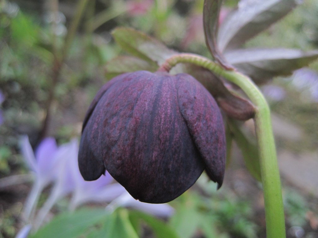 The hellebores continue to put on a splendid show. I planted a very dark one a few years ago and it’s been very slow to flower. At last it has produced one sophisticated bloom, almost black and very lovely. Not fully open yet but here’s a glimpse to be going on with,