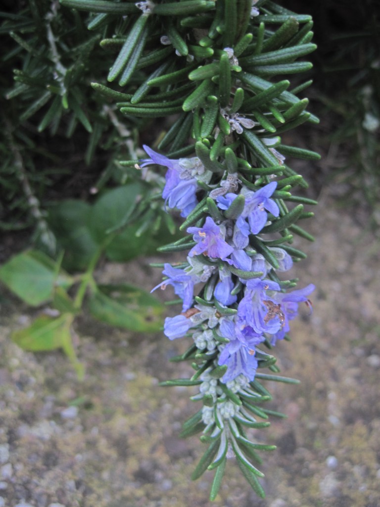 I find herbs are very good plants. Often they’re regarded as just useful for cooking but many of them are beautiful too. The well known ones like rosemary and marjoram are evergreen and have lovely flowers. My prostrate rosemary, which splays on the ground in a pleasing way, has delicate blue flowers at the moment. Sage makes a woody shrub which looks good even in Winter.