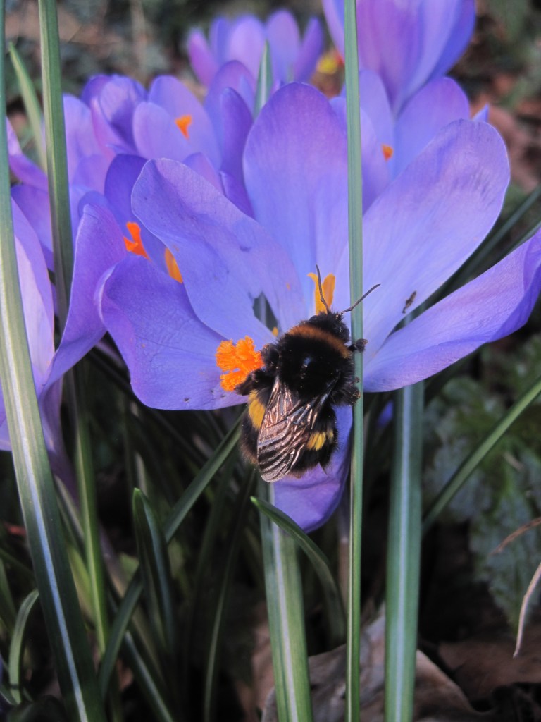 More crocuses are popping up. Their inner petals have stripes so delicate that they look like they were painted with the finest watercolour brush .
