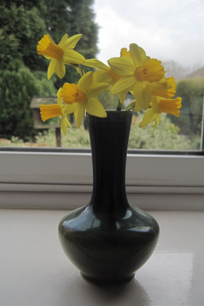 The tiny tete-a-tetes are so beautiful and some are a bit lost behind one of the polytunnels, so I brought in a few to enjoy. Their miniature trumpets and dainty petals are a joy to look at. I have them on the kitchen windowsill to gaze at while I work.