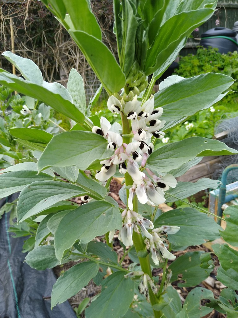 The broad beans are flowering well. They’ll soon have pods developing and delicious baby beans to enjoy with new potatoes and mint sauce.