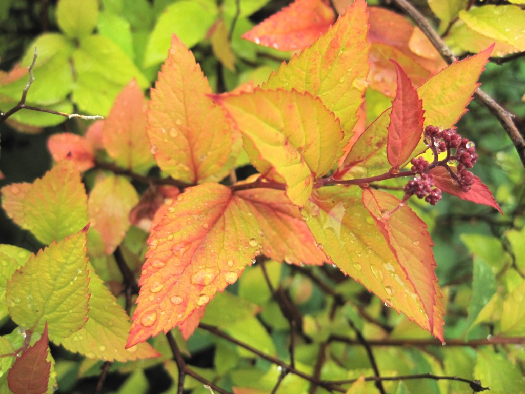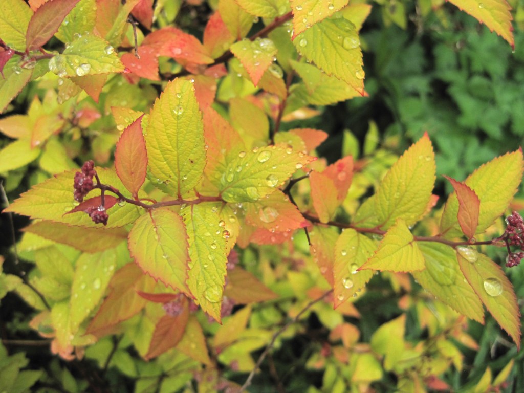 Spiraea “Gold Flame” is living up to its name and lighting up the border.