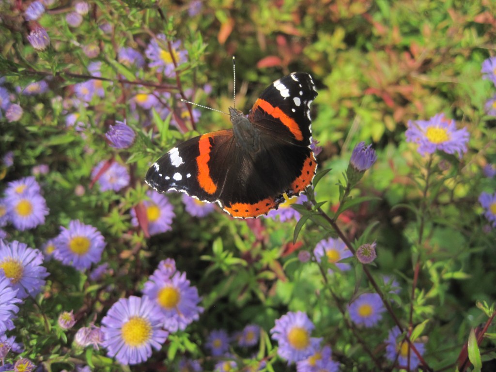 For us, the last days of September were sunny and warm. The garden was full of bees and butterflies. There was a blur of movement on a group of asters in a sunny spot. Red Admirals and Commas flitted and mingled as they sipped nectar from these lovely flowers.