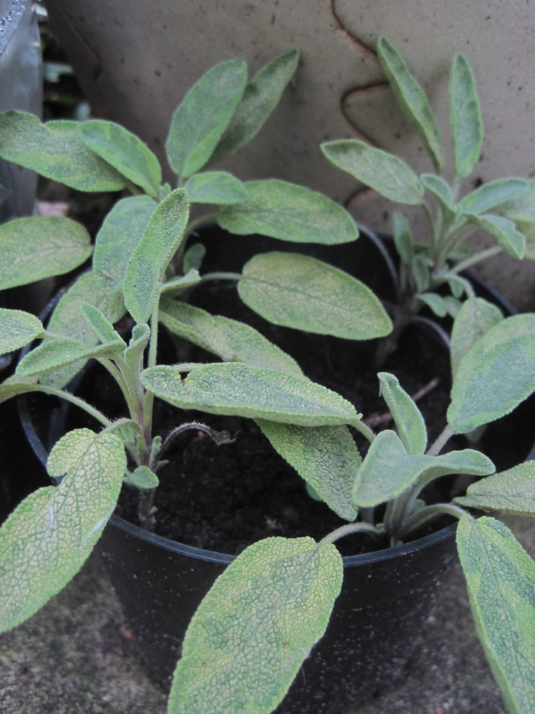 I ‘ve had three lovely sage bushes for the last few years but they’re coming to the end of their best display. One has almost died and looks very bedraggled so I took cuttings from them. I tried the recommended method of placing a polythene bag over two of the pots to retain moisture and left one open. I kept a covered one in the greenhouse and stood the other two outside the green house door in the open air. The two in polythene bags didn’t do as well as the open one standing outdoors so I won’t cover them in future.