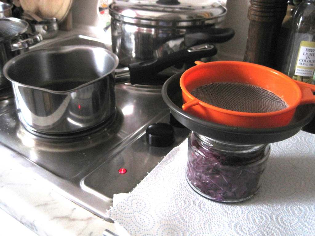 I haven’t grown red cabbage for years but I fancied pickling some. I love pickles and I enjoy making them. It’s really easy to do. So I bought a head from the supermarket . Not as fresh and organic as it would be from the garden but tasty.