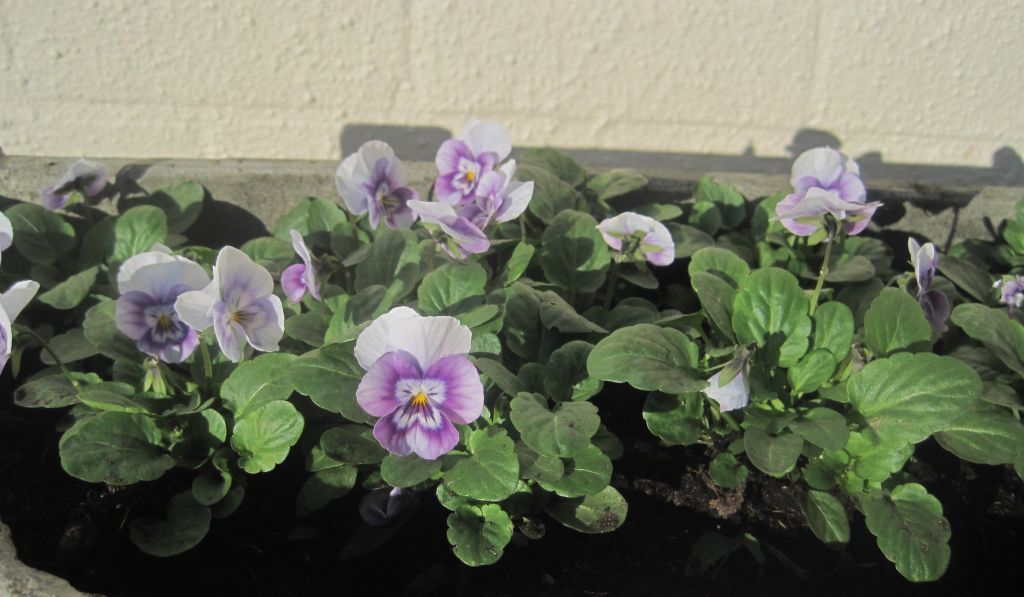 I’ve replaced the pelargoniums with winter pansies. Last year I bought the big pansies and was disappointed by their performance. They flopped in the rain and didn’t please me. I resolved not to buy them again but forgot when I visited the nursery. However, later, I needed a few more and this time I remembered and bought the little violas. So pretty, delicate looking but stand up well to winter conditions.