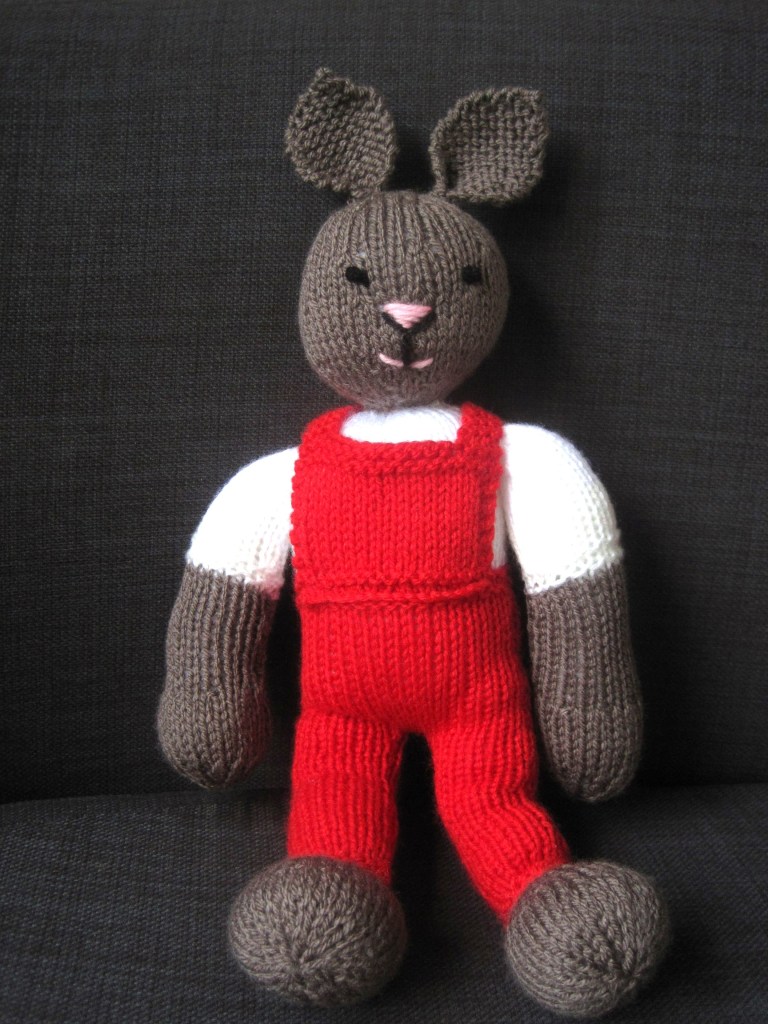 Again, I used Val Pierce’s book “Knitted Rabbits”. Very easy and clever patterns which don’t take long to knit.