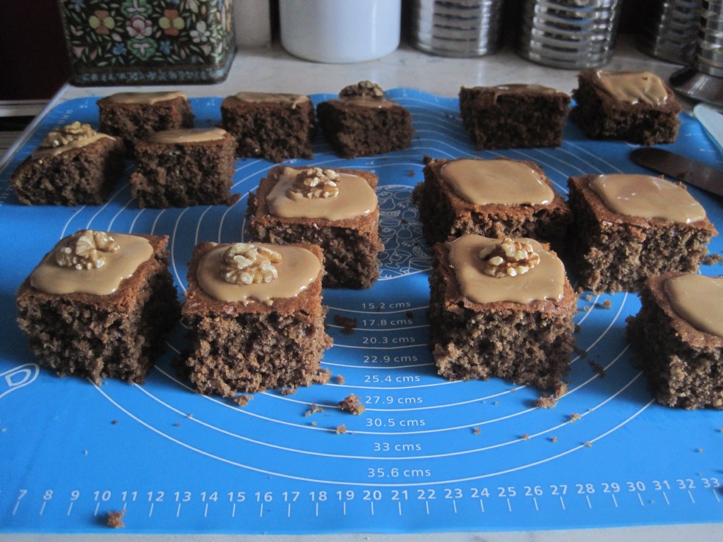 While I’m not busy in the garden I love to bake. I have a new recipe to share. Here is my version of coffee and walnut cake. You will need a large baking tin. I use a roaster, 30 x 25cm (12 x 10 inches).