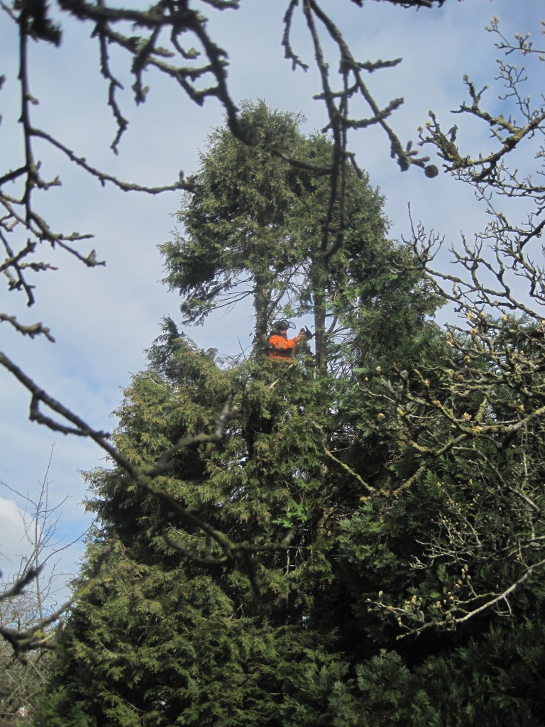 We have two enormous conifers. We were afraid they might topple onto a neighbour’s house in a storm, so reluctantly we had them cut back. Very pleased with the job done by a local tree surgeon and his assistant. Best tidying up afterwards we’ve ever had.