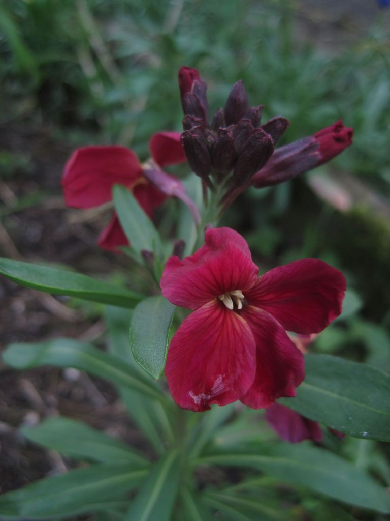 As my regular readers know, I love surprises in the garden. This year I found wallflowers growing under the bird feeders which hang in the pear tree behind the house. Perhaps the seed was in the bird seed mix but it might have blown around the corner of the house from a border in the front garden. Wherever they came from, I’m well pleased. Such beautiful colours and fragrance.