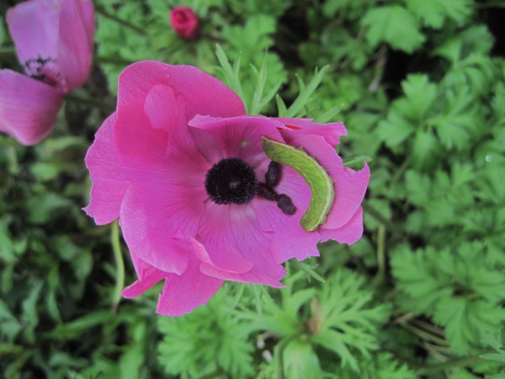 Insects are busy. Ladybirds are visible all over the garden and very welcome because they eat aphids. I found two different kinds of caterpillar in my anemone flowers. I photographed them and left them in peace. I don’t mind sacrificing a flower or two.