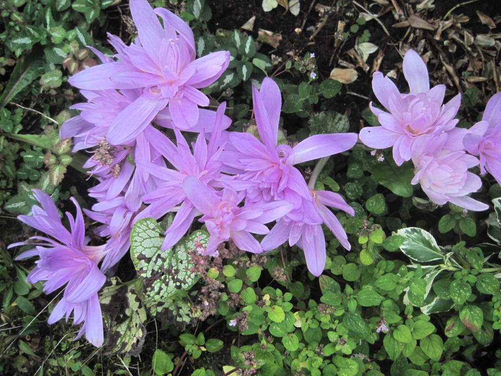 Asters and sedums are beginning to flower. The beautiful colchicums are at their best because the weather has been dry and sunny for a week. (Since writing this we’ve had storms and the poor colchicums were flattened.)