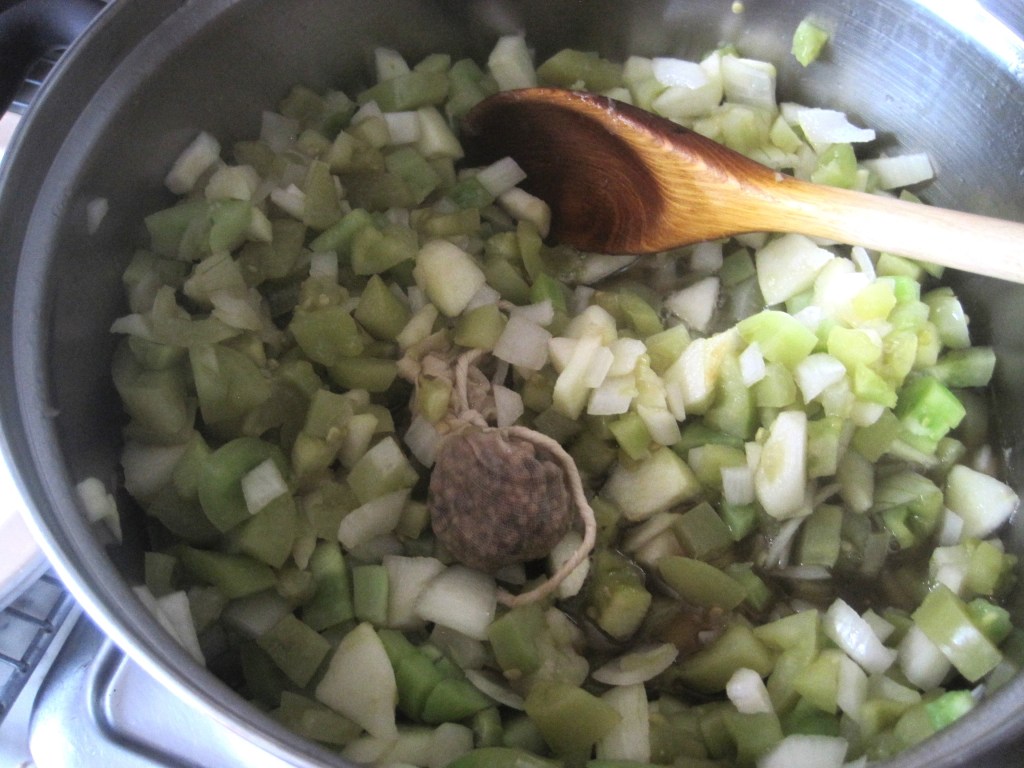 The tomatoes have been removed and composted. I had a bucket of green ones so I used some for green tomato chutney. Not done this before but I had so many this year. It’s not a very strong tasting chutney but I don’t like things to be wasted. The rest are in two baskets in a cool room. They’ll ripen gradually. I often keep tomatoes like this until New Year. No need for the paper bags or bananas that people often recommend. Tomatoes give off enough of their own ethylene gas in order to ripen.
