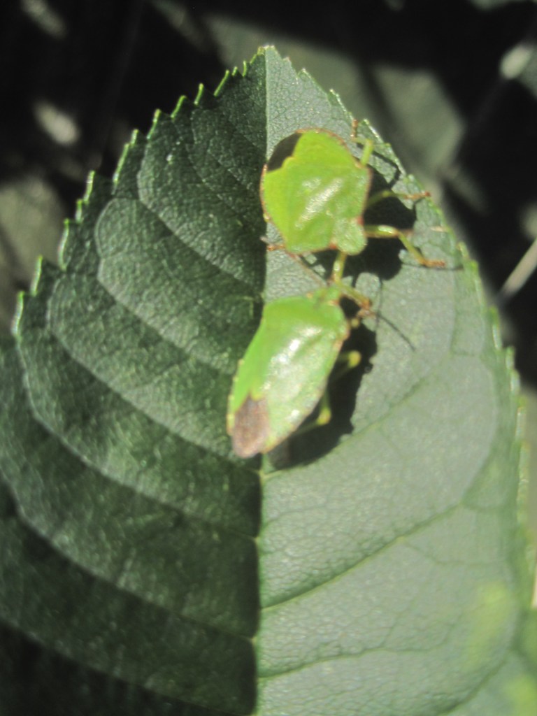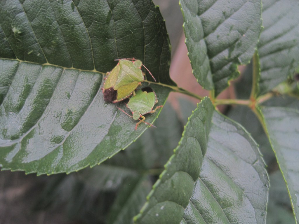 Since then we’ve had some lovely days with azure skies, the whitest of fluffy clouds and a few tiny creatures enjoying the sunlight. There was a gathering of five shield bugs basking together on leaves and a brown moth was fluttering about under the strawberry netting. Fungi are popping up here and there as they always do at this time of year.