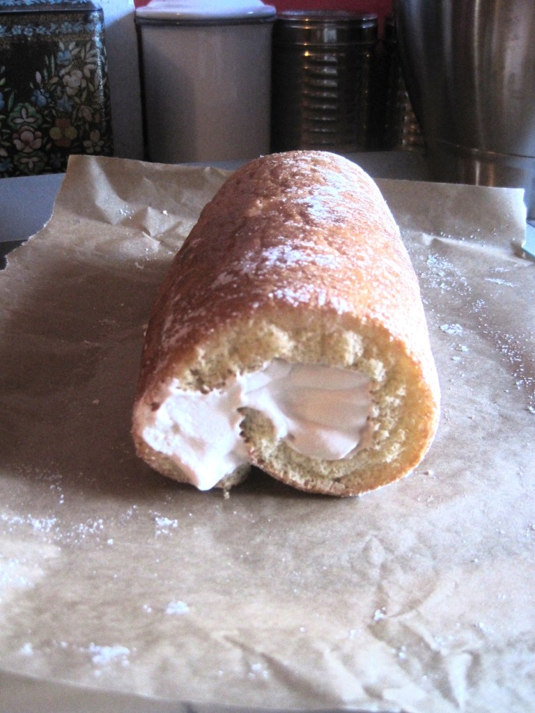 Roll up the cake with the cream inside and place with the open seam underneath.