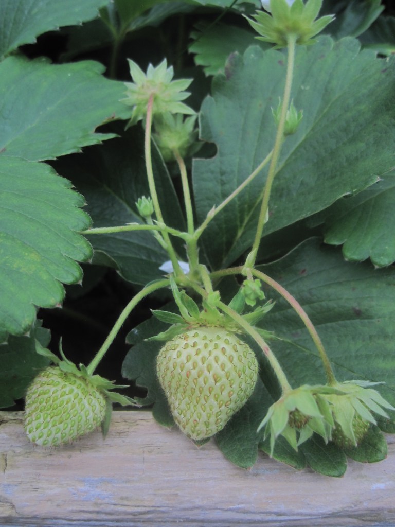 The strawberry plants have produced a late crop but most will not ripen before the frosts begin. I did find one lovely big red one. It had been nibbled but I washed, trimmed and ate it. It was so delicious it made my day.