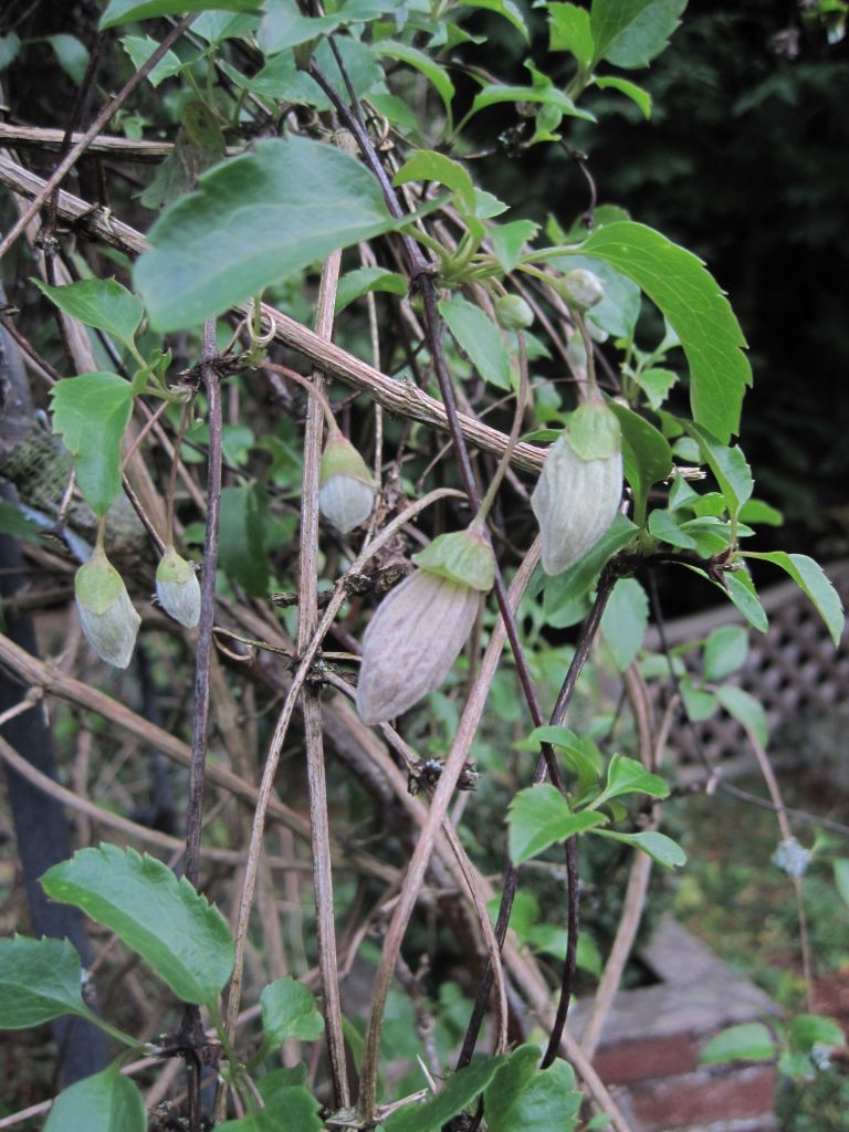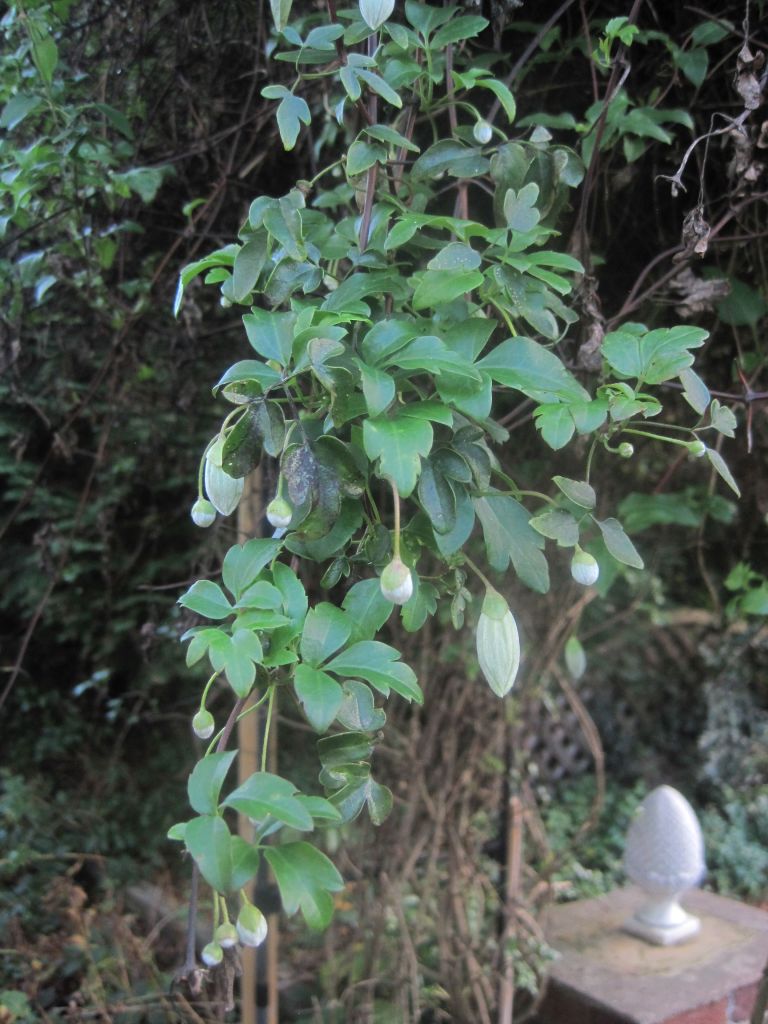 Clematis cirrhosa has begun to flower. I thought it had given up last year but it’s now full of buds again and will soon be lovely. I have “Freckles” with pink splashes inside the bell flowers and “Wisley Cream”. “Freckles” always seems dominant.
