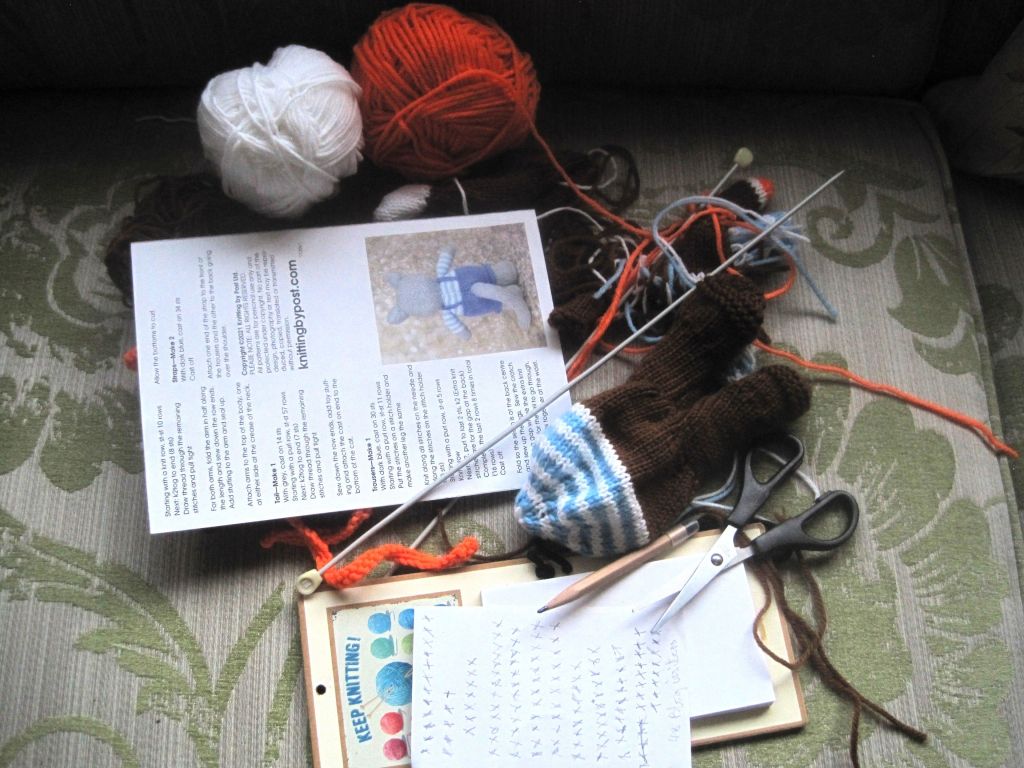 While the weather was wet, cold and miserable I contented myself with some knitting. Here’s “Purrcy”. He was a soothing project during a stressful week. I’m so pleased with him. He’s the cutest cuddly toy I’ve made.