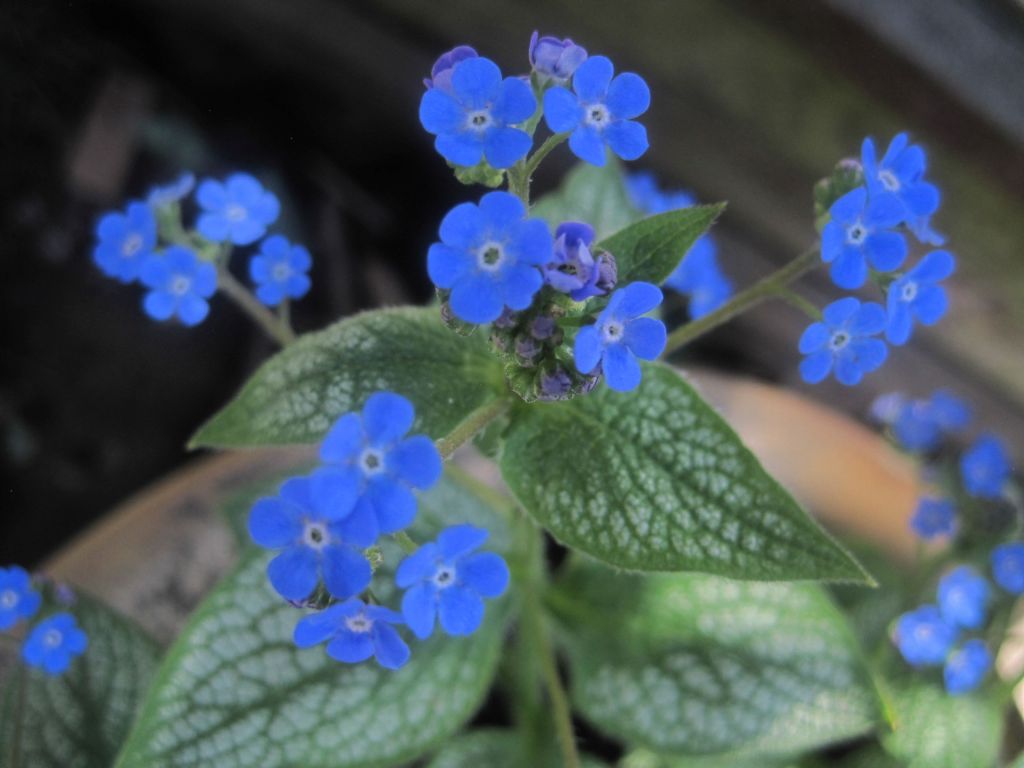 My new Brunnera I planted in a pot last year is doing well. It has bright blue flowers and the silvery leaves are fresh and lovely. A good perennial for a shaded spot in the garden.