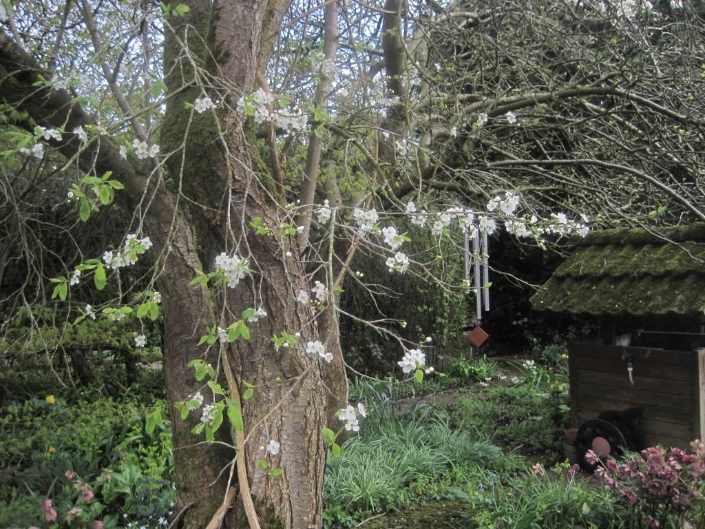 In my garden the plum trees have opened their beautiful snow-white blossom for the attention of the bees. I hope a frost won’t damage them but most years they survive and give me enough plums for tasty jam.