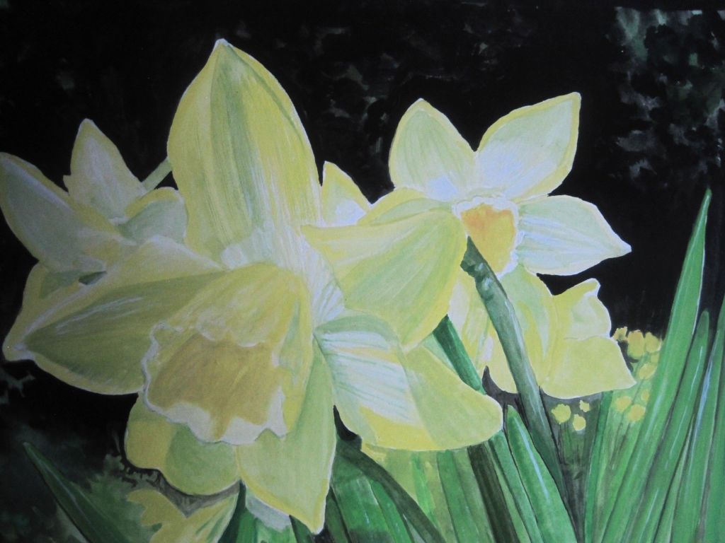 Finally, here’s a painting I did a few years ago. Nothing shouts out Spring like daffodils! Drawn from my own photo taken in the garden then painted with gouache. These daffodils are called “Pippin”. Sadly, I’ve lost them but at least I have a photo and a painting.