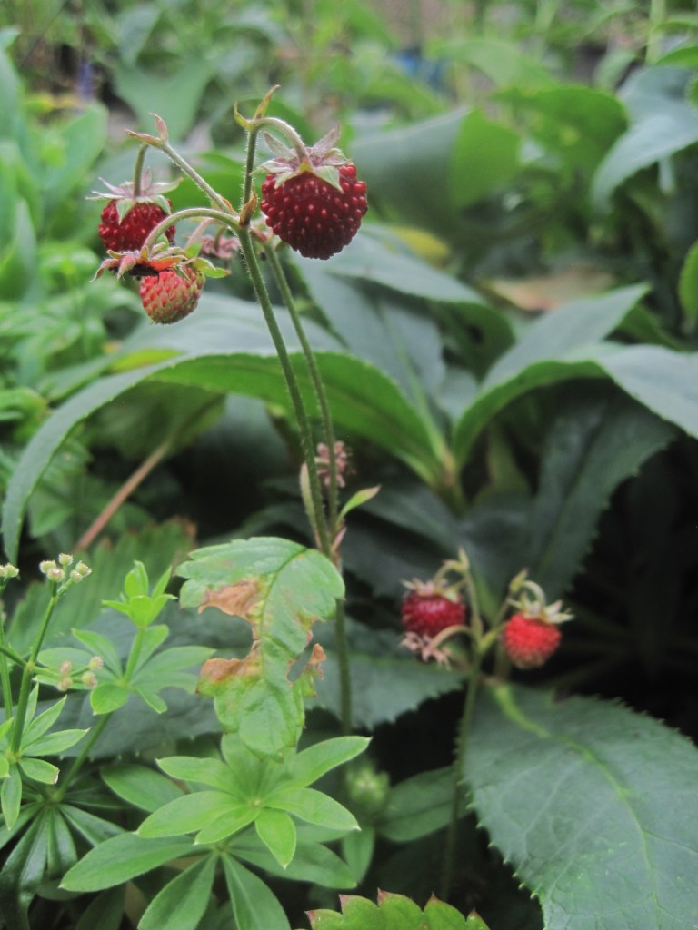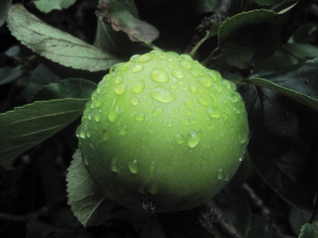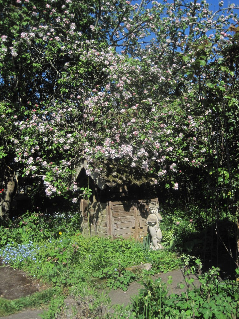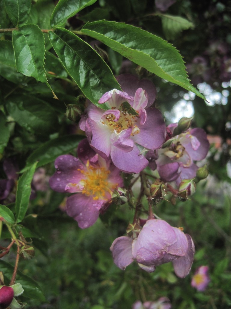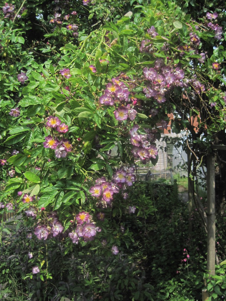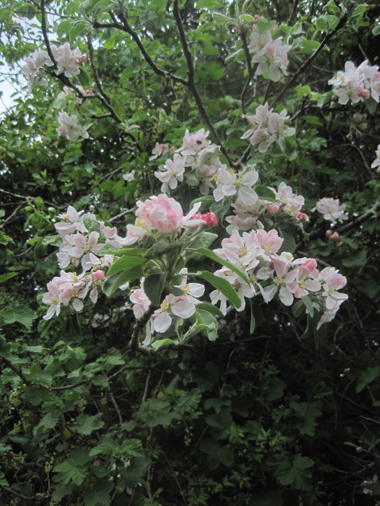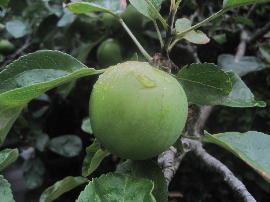 The fruit and berries are swelling ready for their autumn glory. Viburnum berries and Hypericum are almost in full colour and the apples are taking on a rosy hue. Windfalls are dropping now and the birds and insects are taking their share on the ground.