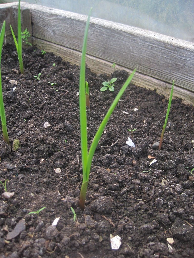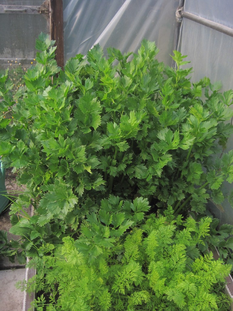 The garlic has pushed through the soil and looks healthy. It has long been said that it needs the frosty weather to encourage it to grow and taste good. I’m not sure if this is true. I grow mine in the polytunnel and it’s fine. It should progress nicely until harvest in May or June.