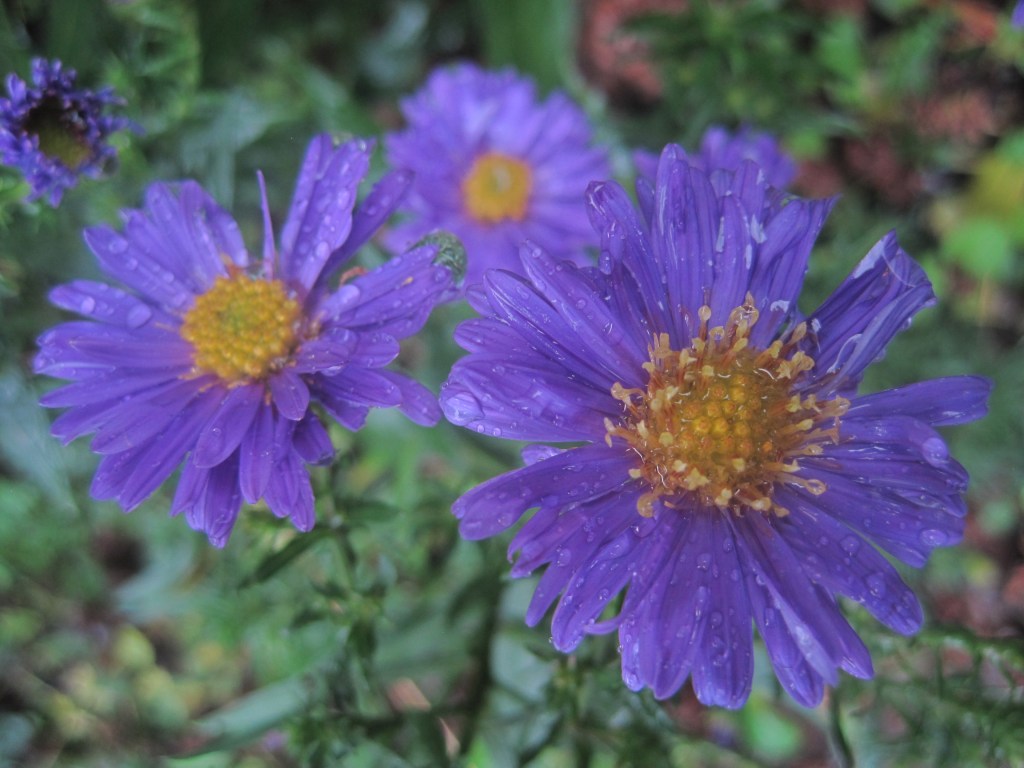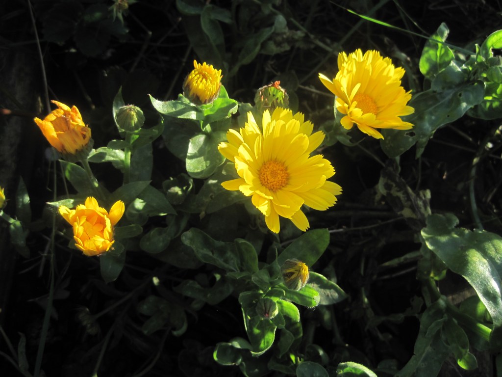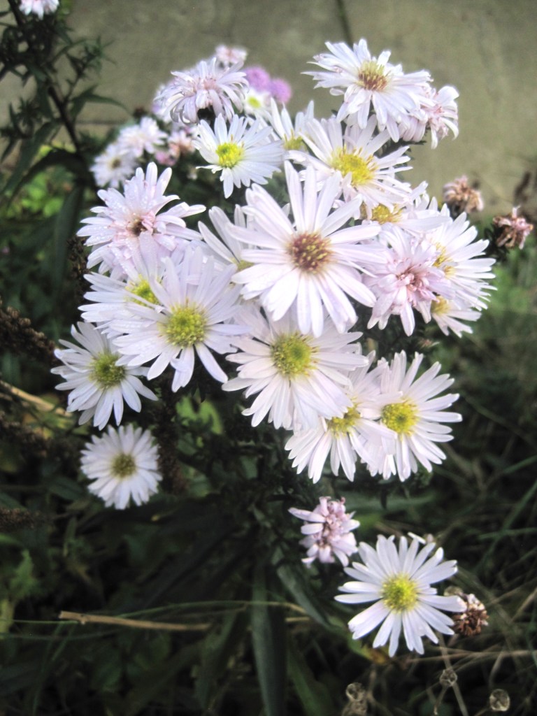 Not many flowers now. Some late asters in lovely shades of purple or pale pink are still giving a little colour to the garden. A few marigolds are flowering too.
