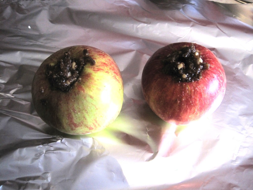 I love baked apples. I choose ones with perfect skin and scrub them. Then I core them, being careful not to split the apples. I sometimes fill the centre with sugar and sultanas but for a change I filled them with Christmas mincemeat. I wanted to try them in my air fryer but I miscalculated and cooked them for too long. I wrapped them in foil and baked them at 145C for half an hour but some of the apple oozed out of the skins. Still tasted wonderful though. I didn’t take a photo of the end result because they didn’t look very decorative.