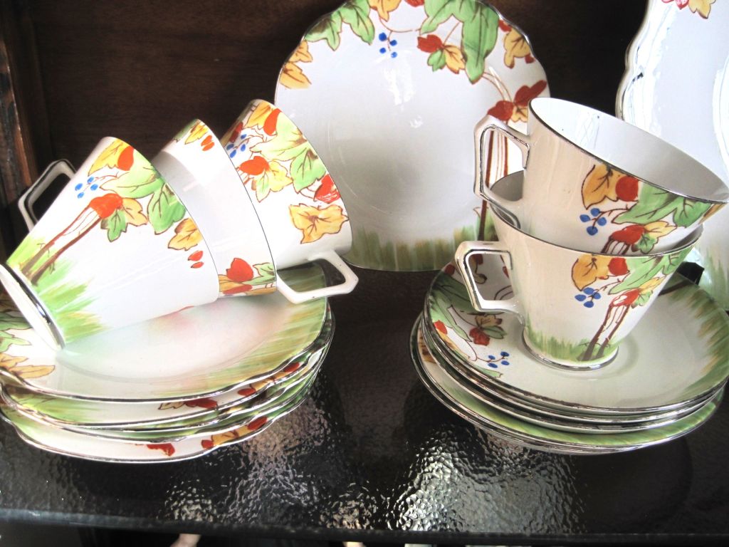 I love my Art Deco pottery. Bits I’ve collected over many years from charity shops and flea markets. Lovely colours and patterns.