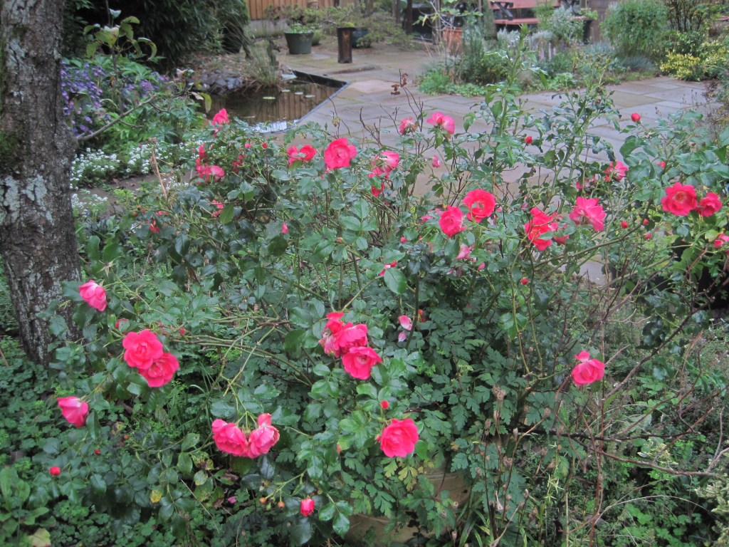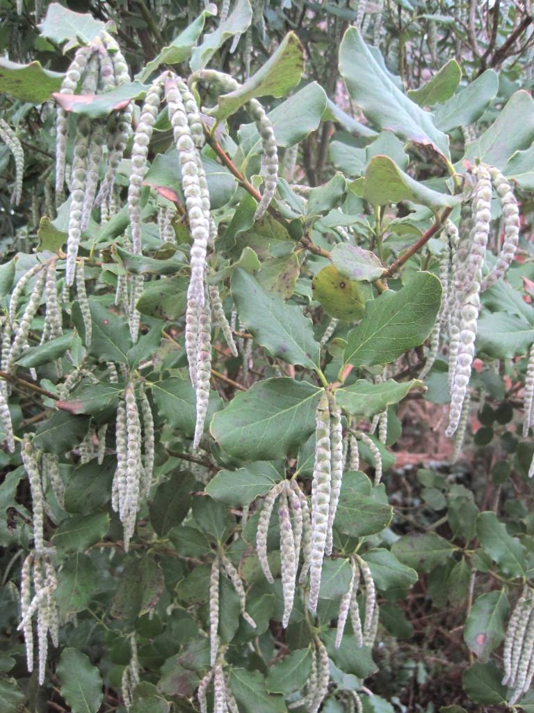 The Garrya eliptica is at its best right now. It has beautiful long silver catkins. The bush has grown tremendously this year. Probably this was caused by the torrential rain we’ve had. Once the show is over it looks a bit bedraggled but I shall enjoy it while it lasts.