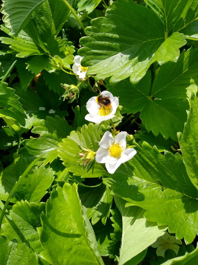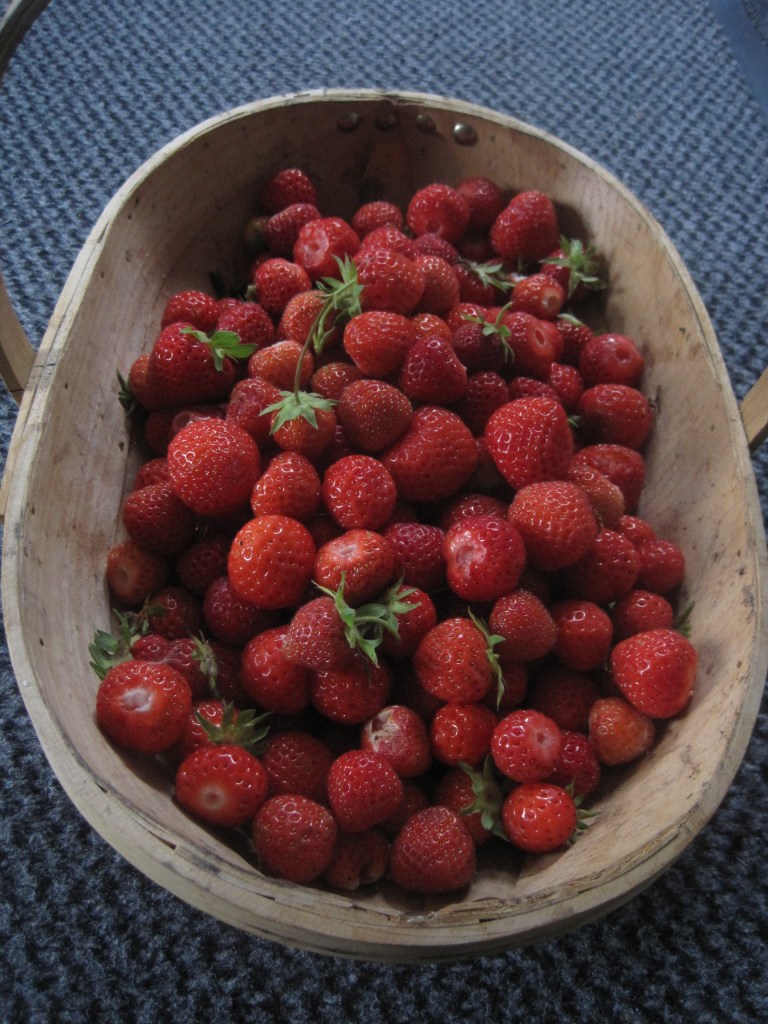 The strawberries have a fling for about two weeks. Luscious berries ripe for the picking and keeping me busy. Lots to enjoy fresh and plenty to freeze for jam and winter treats.
