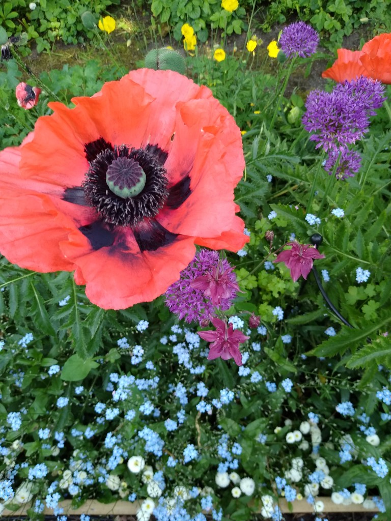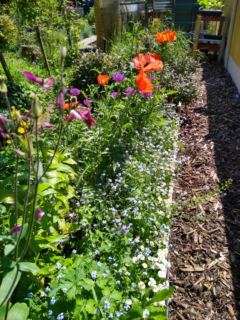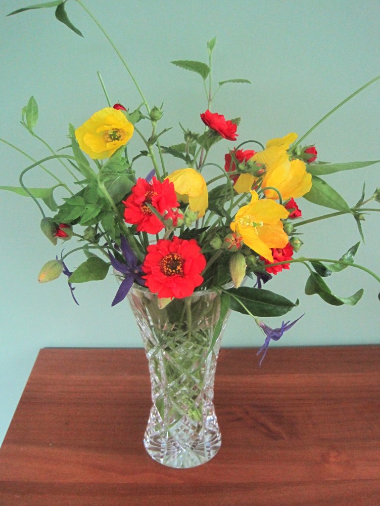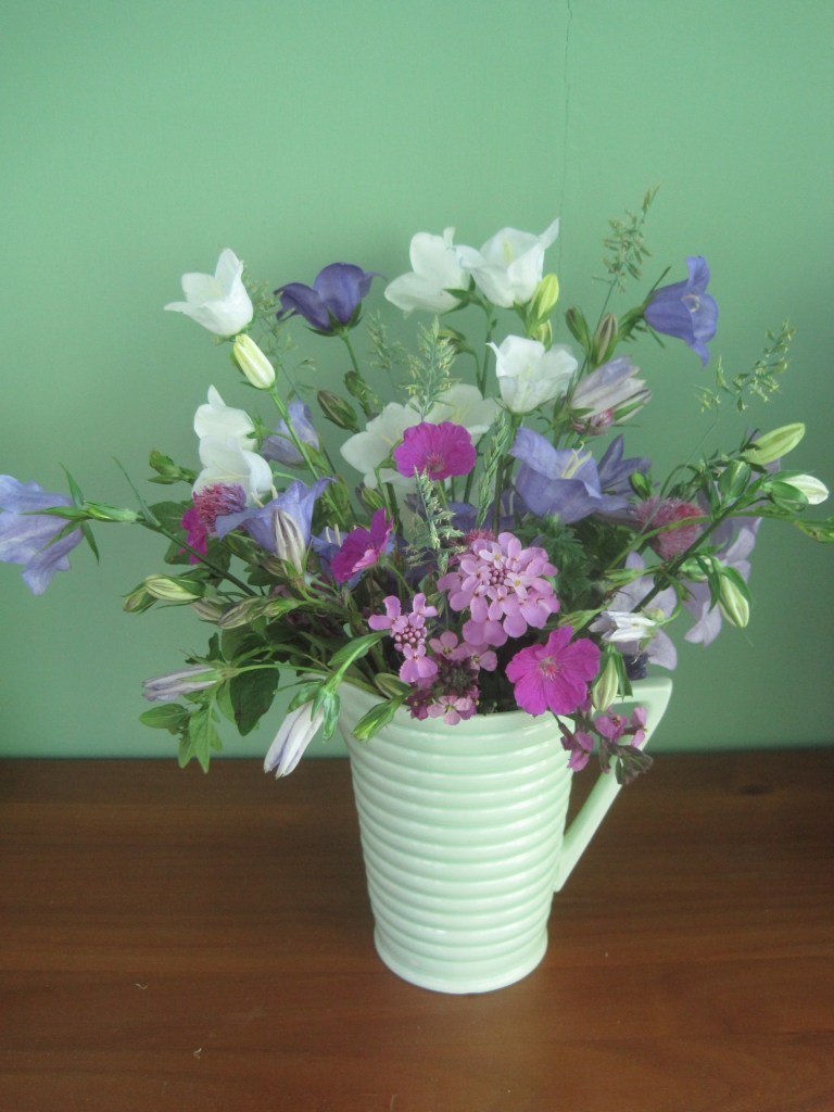 Lots going on in June, my favourite month. An abundance of delicious food in the garden and a romantic time of roses, campanulas and poppies. Lingering scents on the air, lovely coloured flowers and blue skies. Mint sauce, new potatoes, peas from the pod and fresh salads: so much to enjoy.