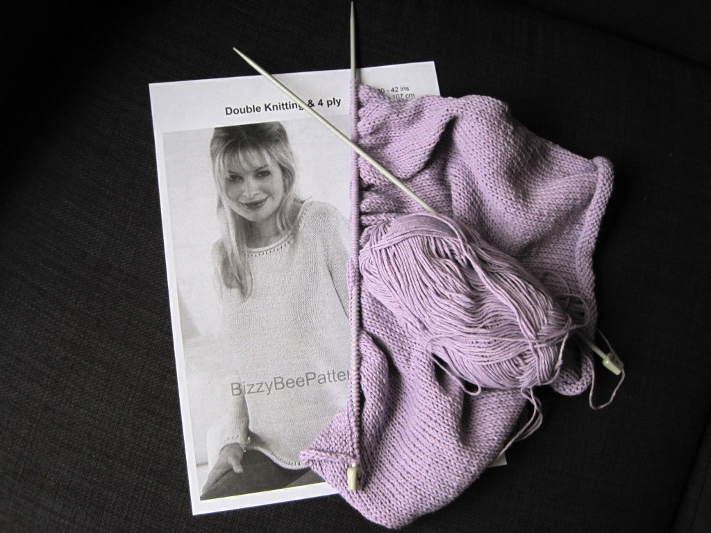 In between freezing and gardening I’ve been getting on with my knitting, but slowly. It seems to have taken ages but that’s because I haven’t been constant. If I’m honest, I prefer chunky wool which knits up quickly, other wise I’m bored by the slow progress. It’s almost finished and I probably won’t have the urge to get those needles clicking again until winter.