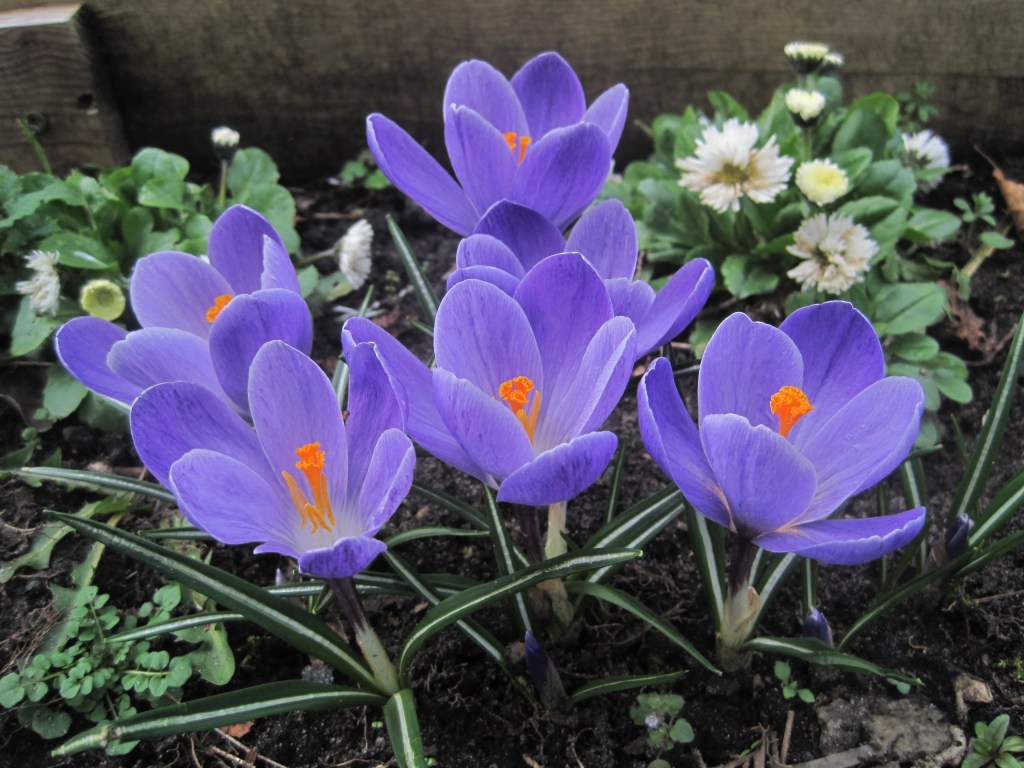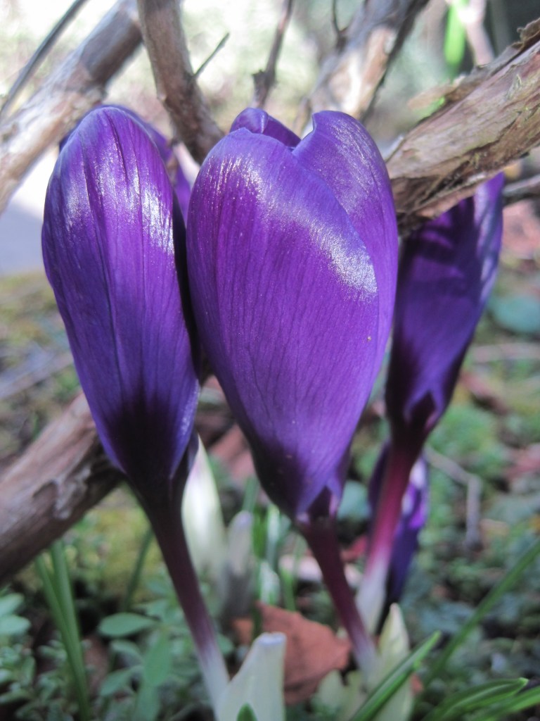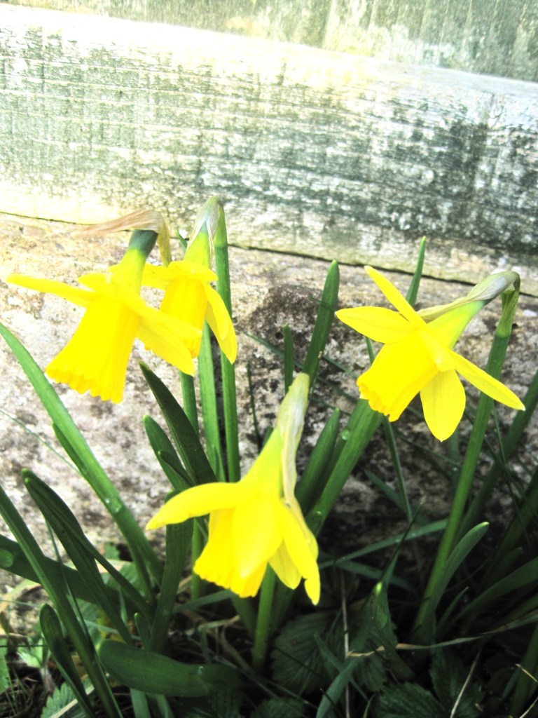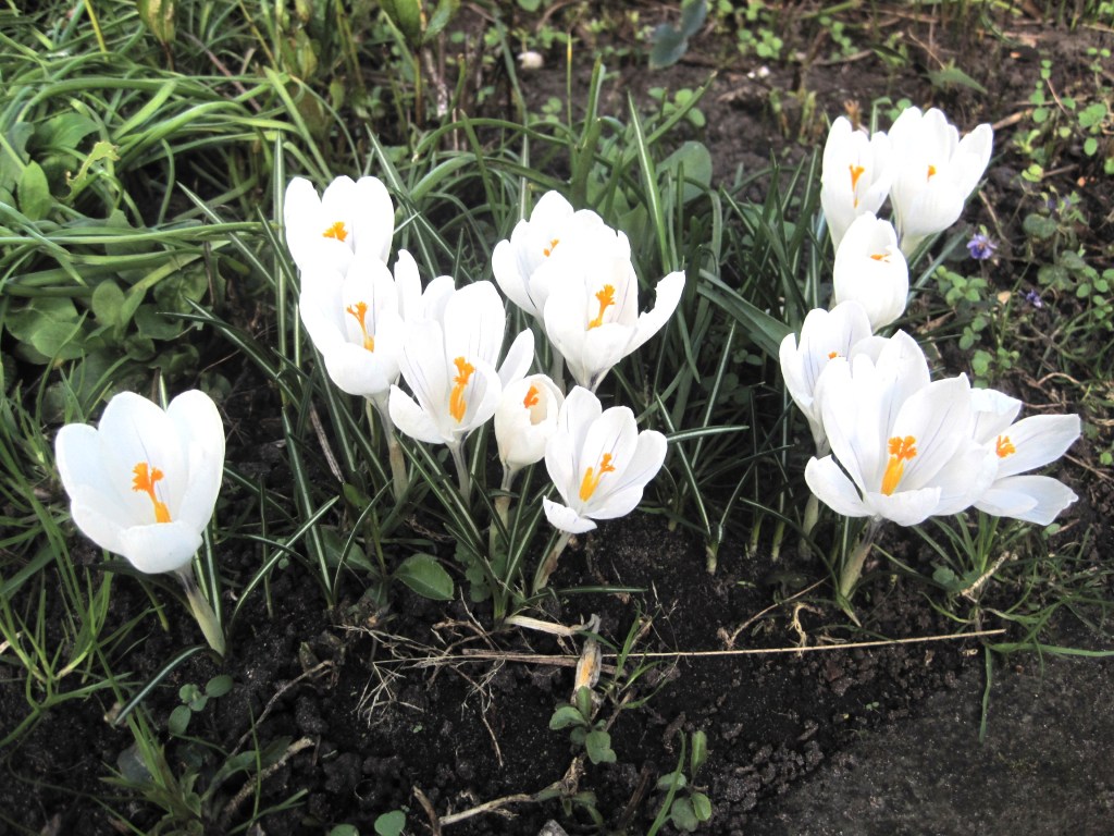 The plums are opening their beautiful, pure white blossom. It looks so delicate and yet it’s the first of the fruit to burst flower buds. Frost can still be a problem but they’re pretty hardy. Sparrows have been pecking the buds. They’re probably a sweet, tasty treat. I love to see the birds in the garden though. Mostly, they do a lot of good.