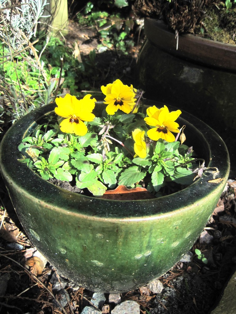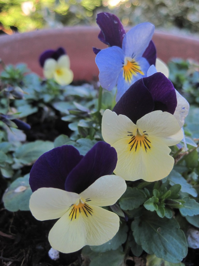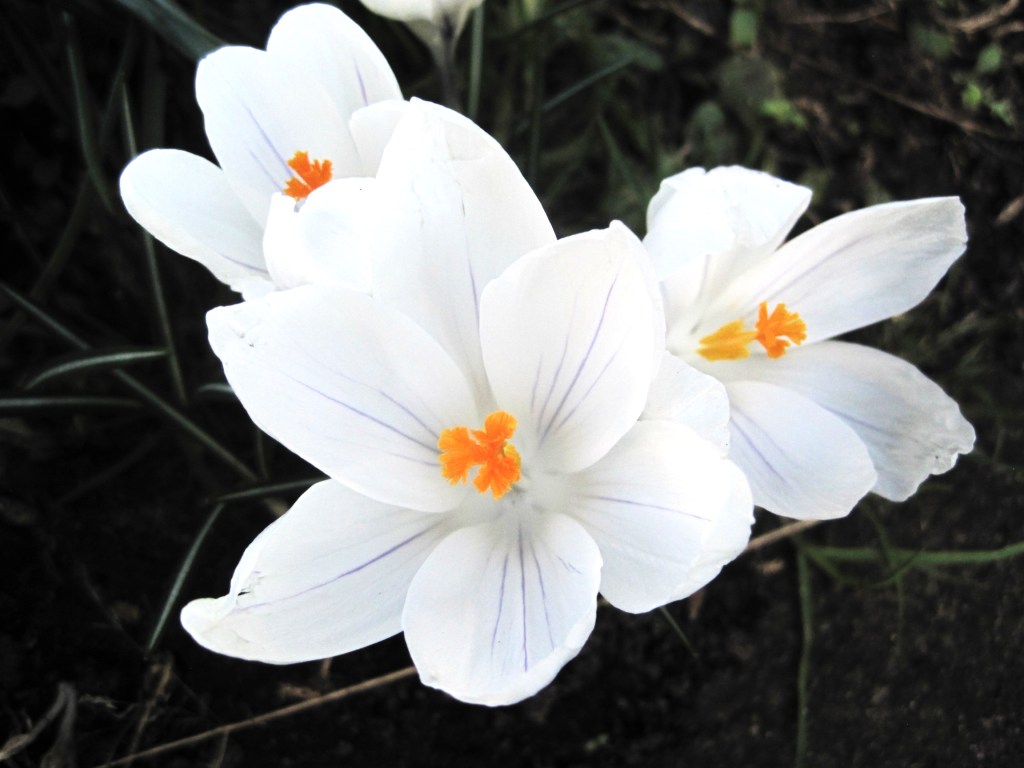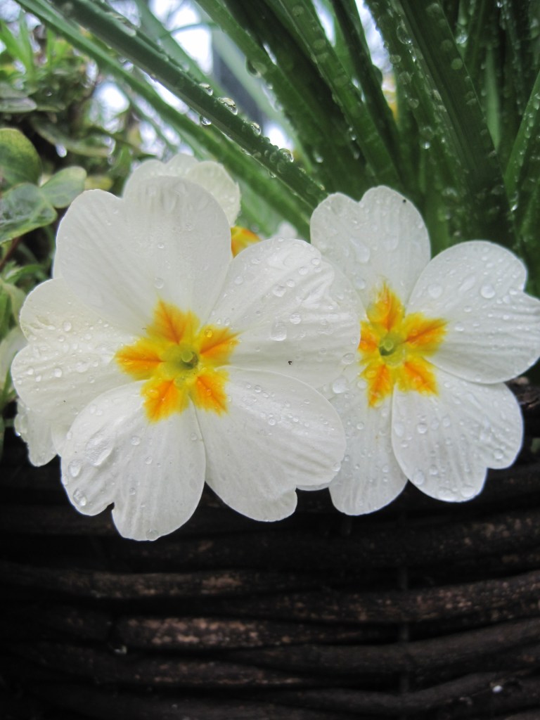 The plums are opening their beautiful, pure white blossom. It looks so delicate and yet it’s the first of the fruit to burst flower buds. Frost can still be a problem but they’re pretty hardy. Sparrows have been pecking the buds. They’re probably a sweet, tasty treat. I love to see the birds in the garden though. Mostly, they do a lot of good.